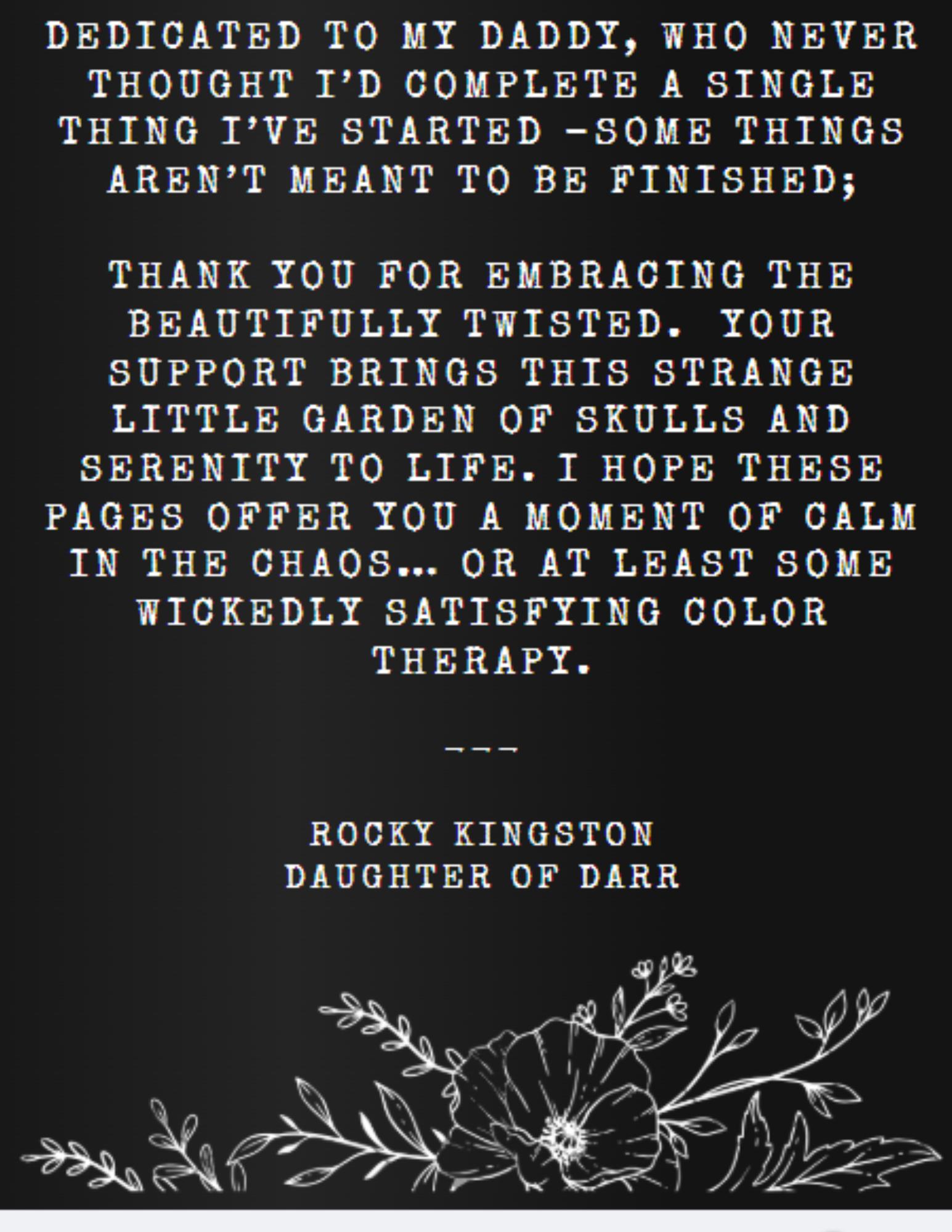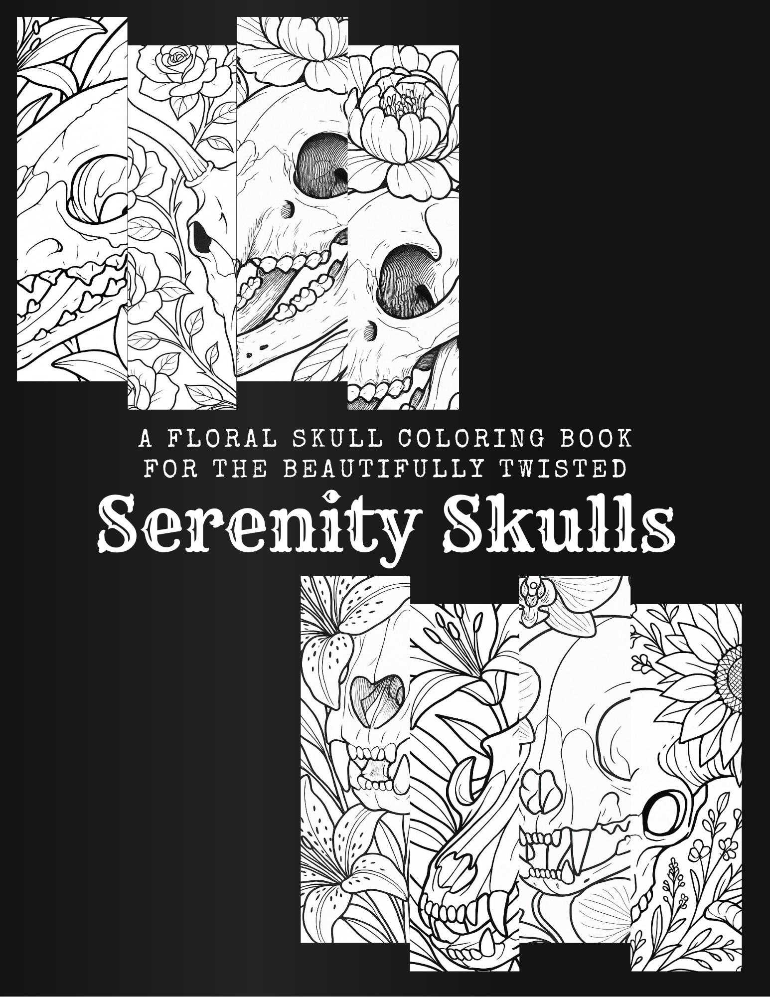 Serenity Skulls balances floral elegance with quiet morbidity. It’s meditative. It’s moody. And it’s made for colorists who want something more twisted than teddy bears but more beautiful than blood.