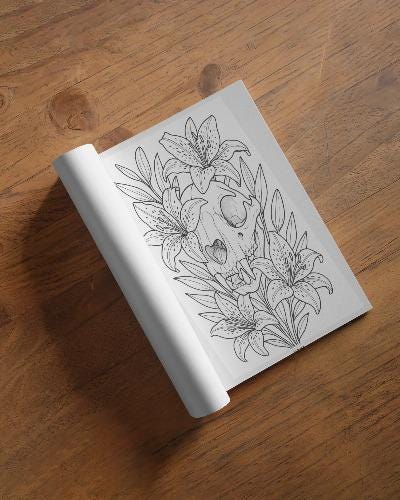 Every line is crisp. Every skull tells a story. Every bloom reminds you—you’re coloring between the lines of life and death.